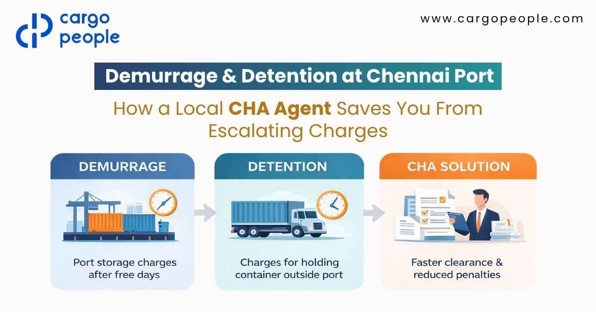 Demurrage and detention charges at Chennai Port can significantly increase logistics costs when containers remain at the terminal or outside the port beyond the allowed free period.